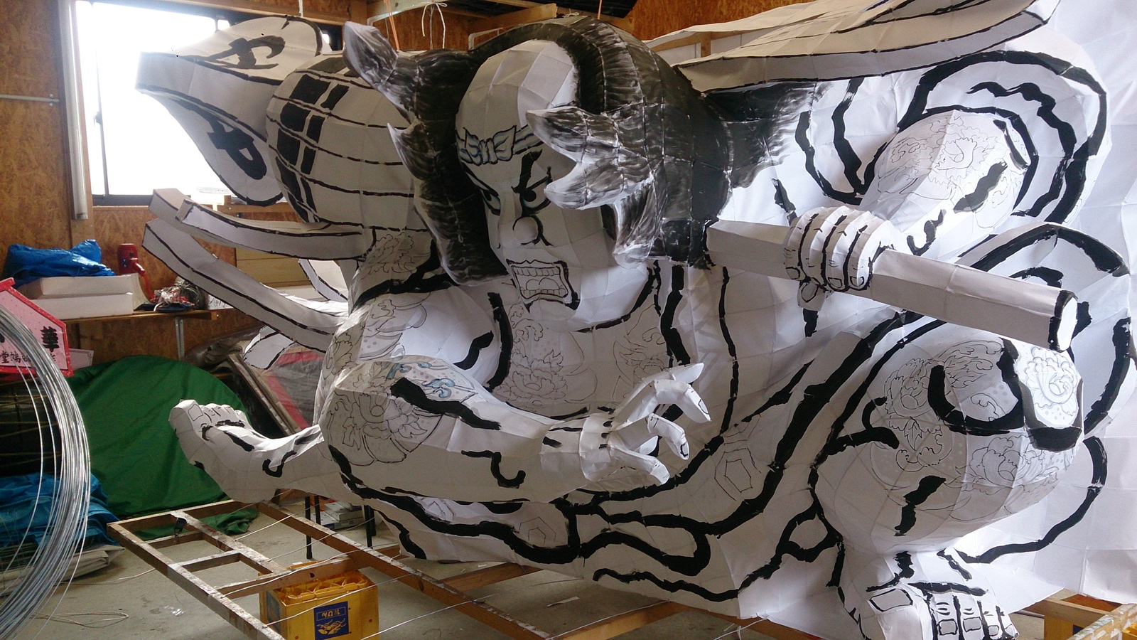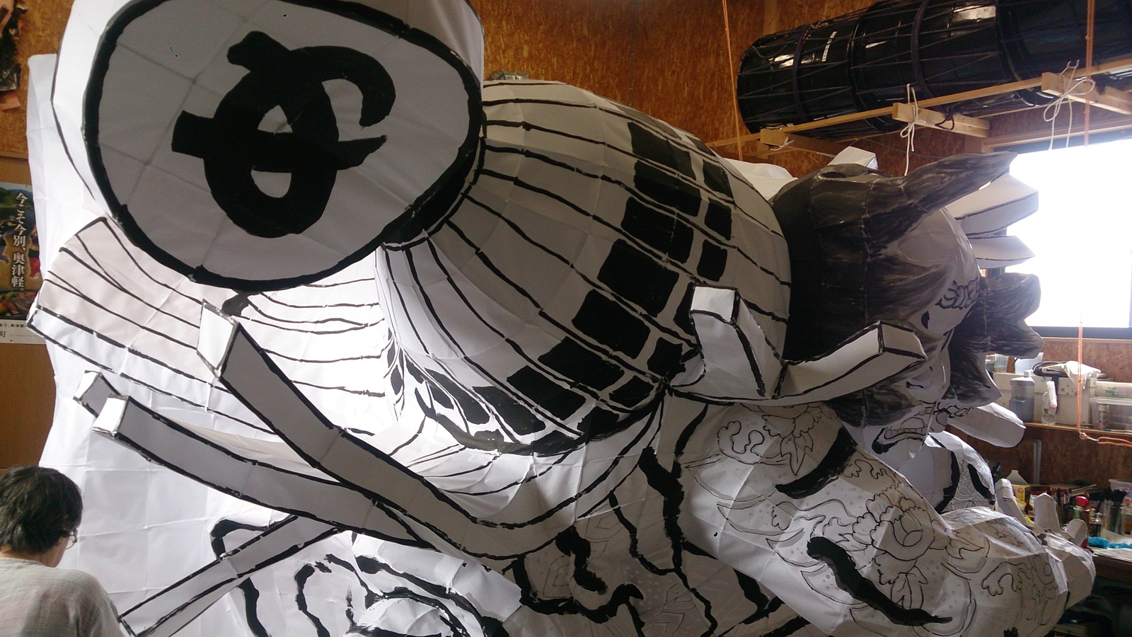 いやー、荒馬まつりが本日からスタートしますねぇ~。。。 本日は八幡町子供会が夜間運行致しまして、 私共、今別ねぶた実行委員会は5日の合同運行からスタートです。 おっとその前に、5日のお昼には、 世界荒馬選手権が開催され、そこでも荒馬跳ねますねぇ。 今年はやることが多くてかなりバタバタしそうです。。。 血気盛んな人も出てくると思うので、、、 皆様、ほとけごころを持って、そういう方々をスルーしましょうww さて、運行に向けて鋭意制作していましたねぶたが、ついに完成しました!! それが、こちらです!(8/4 11:40現在) 墨入れまで完成しましたーーーーーーーーーーー!! おそーーーーーーーーーーーーーーい! 5日の朝8:30に台あげを行いますので、 来られる方は来て手伝いをお願いします! 今年も しっとりとしたねぶたと、 ぐったりとしたねぶた師が皆様をお待ちしております! 頼んだぞ!堂端ねぶた師! 以下、運行スケジュール諸々。。。
