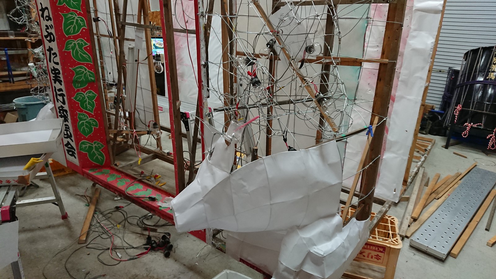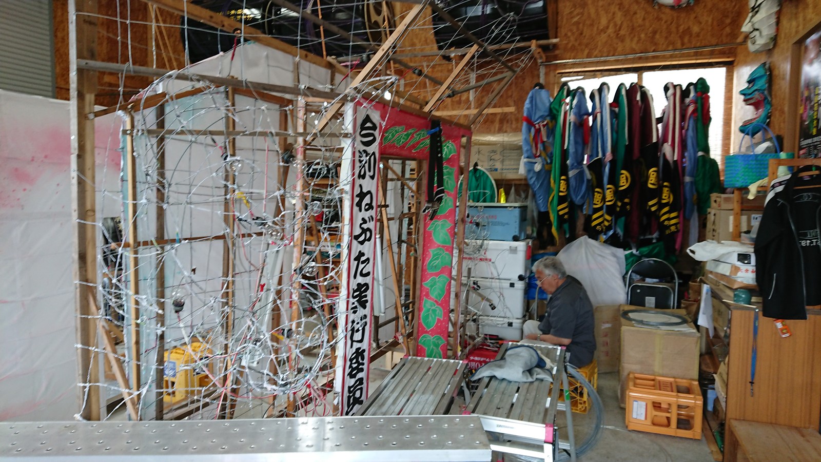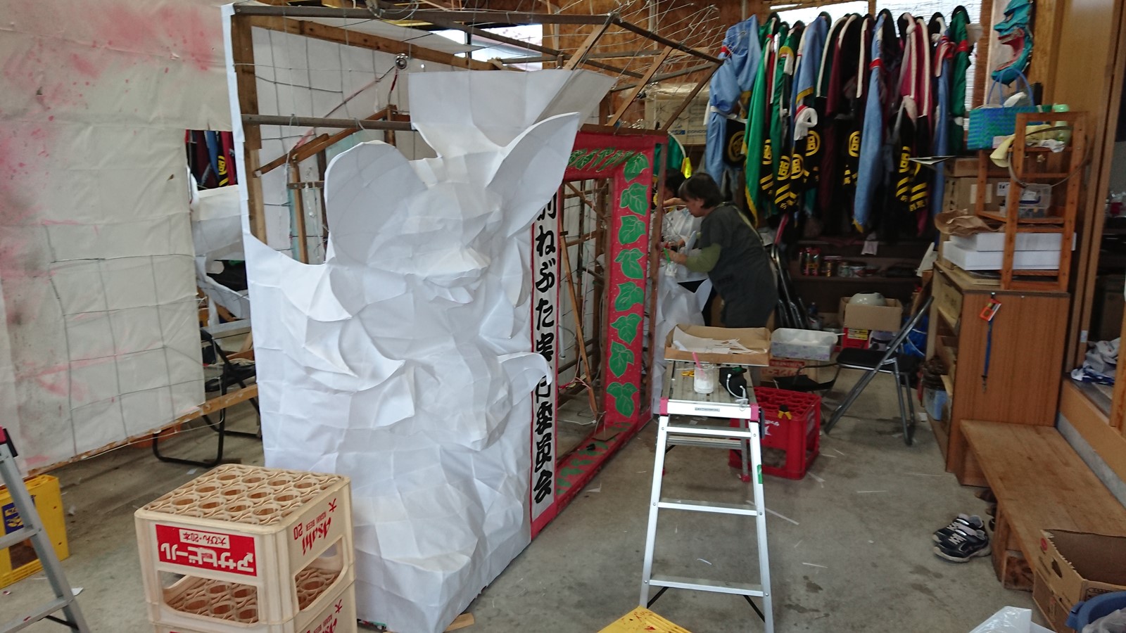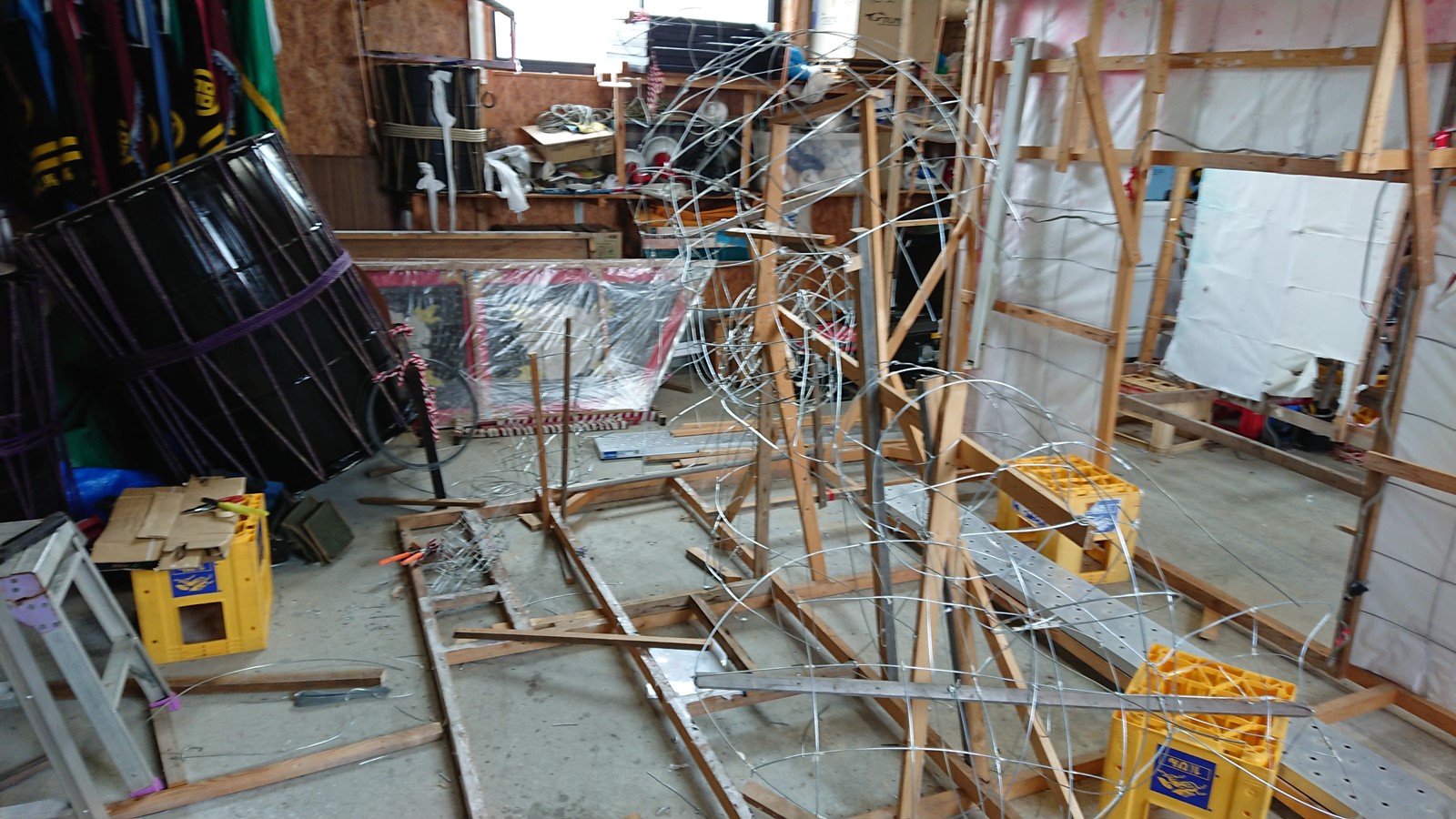 令和元年6月14日撮影 令和元年6月23日撮影 令和元年6月25日、緊急ミーティングを実施し、 ねぶた製作続行を決定。 阿部節三、佐藤繁雄両名による、ねぶた製作となりました。 令和元年6月30日撮影 令和元年6月30日撮影 令和元年7月4日撮影 令和元年7月4日撮影 令和元年7月13日撮影 令和元年7月13日撮影 令和元年7月13日撮影 令和元年7月14日撮影 令和元年7月14日撮影 令和元年7月15日撮影 令和元年7月15日撮影 あっ。。。 イノシシ側から撮るの忘れてた。。。 明日撮りに行きますw この3連休に、京都から1名、東京から2名、奥平部から4名(んっ?w) 紙貼りの助っ人が来てくれました! 京都、東京の助っ人さんに関しては、 夜遅くまでやってくれていたようで。。。 俺なんかしこたま酒飲んでたというのに。・・・すまねぇw おかげさまで、貼れるところは、ほぼほぼ貼ってしまいました! ありがとうございます! こっから墨入れ、蝋付け、着色と進んでいきます。 台あげの予定は28日になりました! 22日の夕方からは、 「ねぶたそろそろ始まりますから、太鼓叩いたり、荒馬踊ったりしましょう~!ジュースくらい出すから、よっといで~!坊っちゃん、お嬢ちゃん、お父上、奥方、翁、グランドマザー大集合の会」 略して、「荒馬を踊る会」を行う予定ですw ただ集まって、踊ったり、休憩したり、「ねぶたはじまるね~!」って、 思う集まりですw 踊ってもいいし、見に来るだけでもいいしw ゆるい感じで行います! お時間ある方はどうぞ! 令和元年7月22日(月)~令和元年8月2日(金)※土日はお休みの予定。 場所:ねぶた小屋 時間:17:30くらい(ゆるッ!)