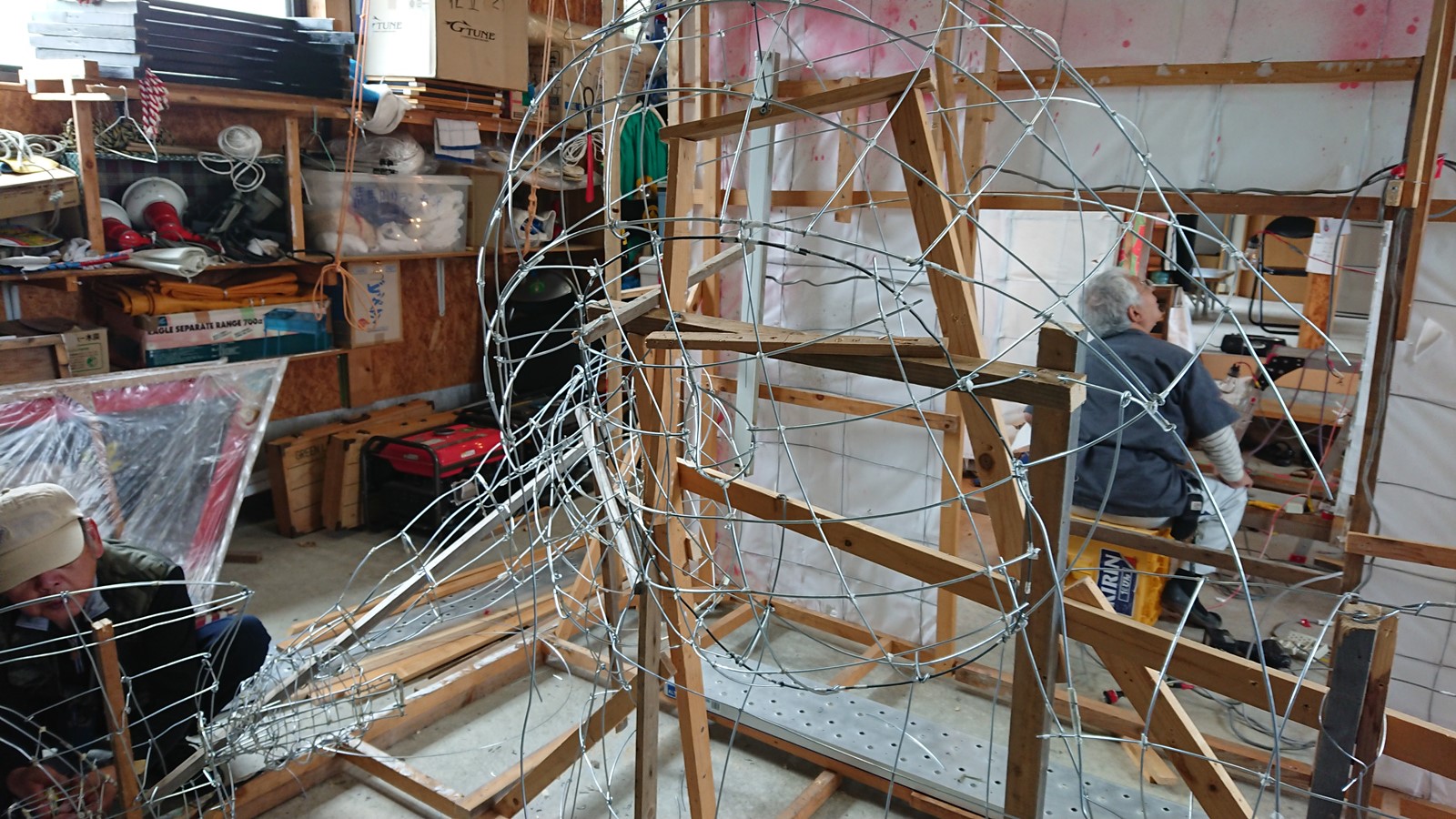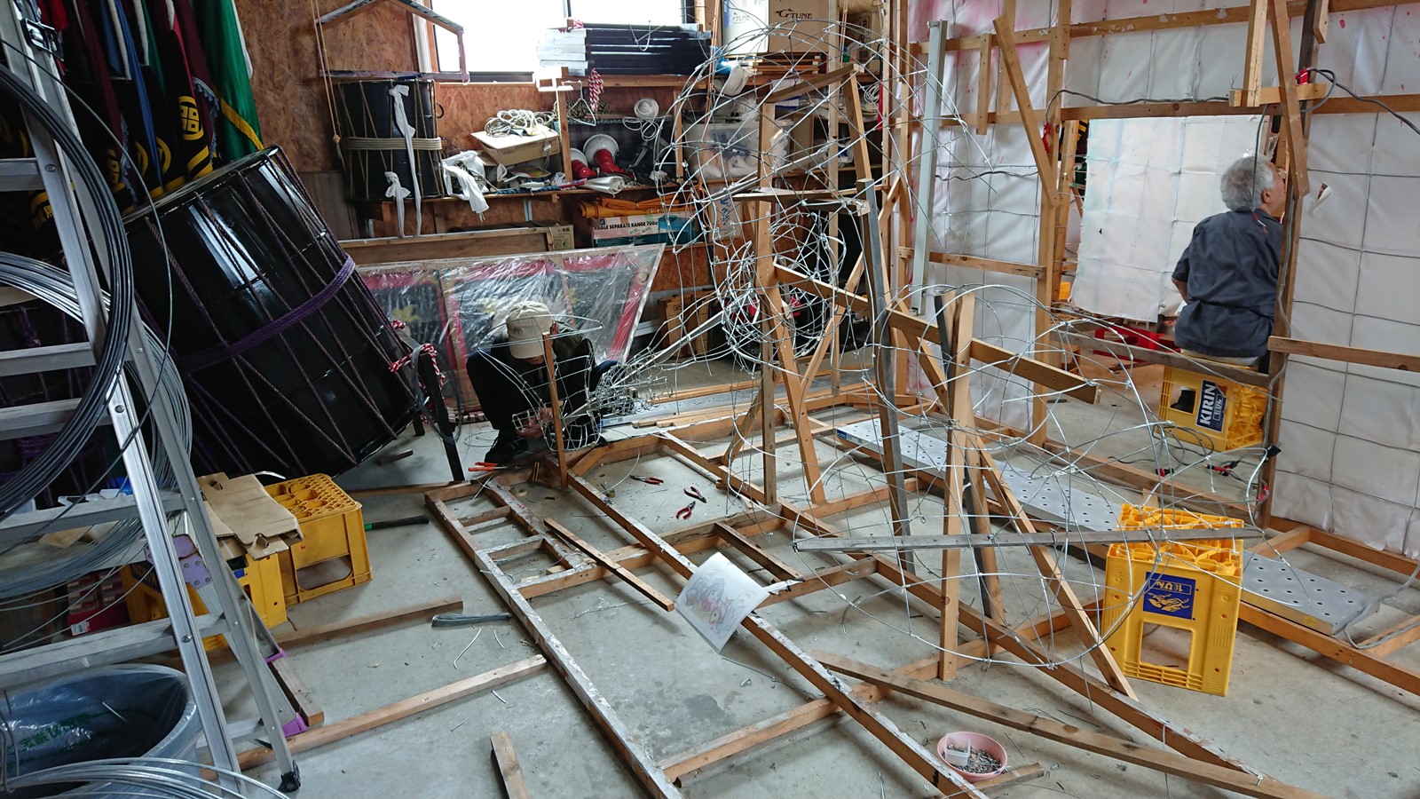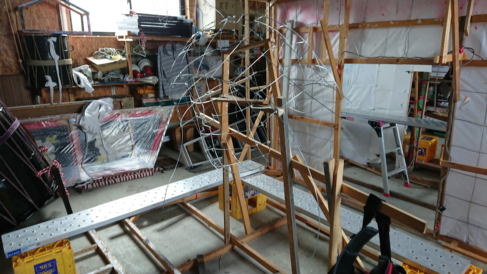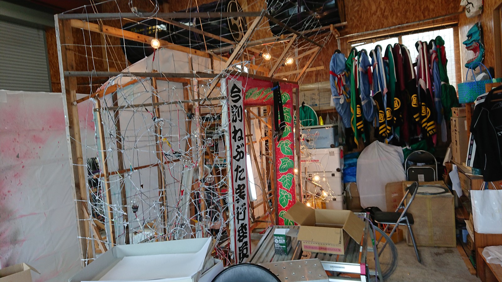令和元年6月14日撮影 令和元年6月23日撮影 令和元年6月25日、緊急ミーティングを実施し、 ねぶた製作続行を決定。 阿部節三、佐藤繁雄両名による、ねぶた製作となりました。 令和元年6月30日撮影 令和元年6月30日撮影 令和元年7月4日撮影 令和元年7月4日撮影 令和元年7月13日撮影 令和元年7月13日撮影 令和元年7月13日撮影 令和元年7月14日撮影 令和元年7月14日撮影 令和元年7月15日撮影 令和元年7月15日撮影 あっ。。。 イノシシ側から撮るの忘れてた。。。 明日撮りに行きますw この3連休に、京都から1名、東京から2名、奥平部から4名(んっ?w) 紙貼りの助っ人が来てくれました! 京都、東京の助っ人さんに関しては、 夜遅くまでやってくれていたようで。。。 俺なんかしこたま酒飲んでたというのに。・・・すまねぇw おかげさまで、貼れるところは、ほぼほぼ貼ってしまいました! ありがとうございます! こっから墨入れ、蝋付け、着色と進んでいきます。 台あげの予定は28日になりました! 22日の夕方からは、 「ねぶたそろそろ始まりますから、太鼓叩いたり、荒馬踊ったりしましょう~!ジュースくらい出すから、よっといで~!坊っちゃん、お嬢ちゃん、お父上、奥方、翁、グランドマザー大集合の会」 略して、「荒馬を踊る会」を行う予定ですw ただ集まって、踊ったり、休憩したり、「ねぶたはじまるね~!」って、 思う集まりですw 踊ってもいいし、見に来るだけでもいいしw ゆるい感じで行います! お時間ある方はどうぞ! 令和元年7月22日(月)~令和元年8月2日(金)※土日はお休みの予定。 場所:ねぶた小屋 時間:17:30くらい(ゆるッ!)