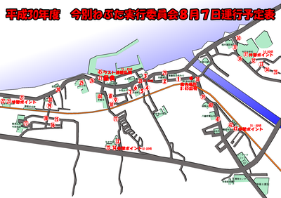 8月6日 運行予定 18:00出発(数字は跳ねる場所)