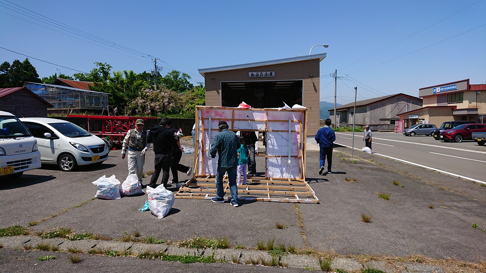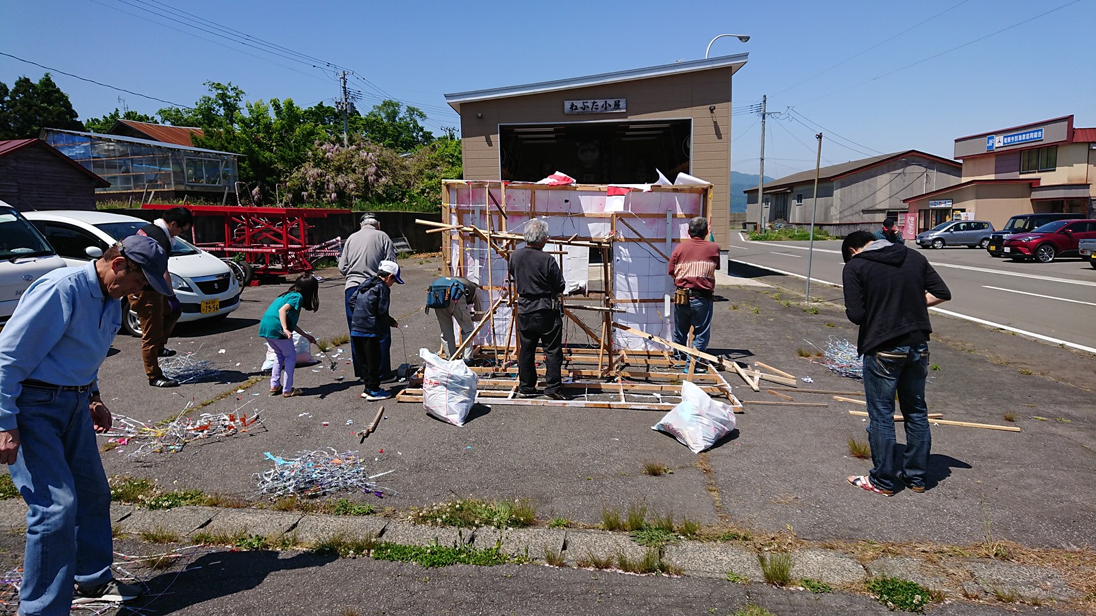 小屋を開くと書いて、「ねぶたの解体作業及びねぶた製作の下準備」と読みます!