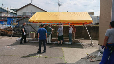 ねぶた小屋横のテントも設営完了!着替えはここで!
